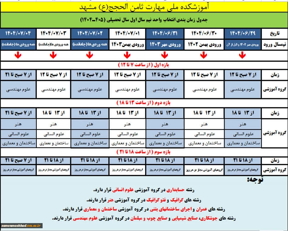 امتیاز دهید : جدول زمانبندی انتخاب واحد نیمسال سال تحصیلی 1405-1404 2 یکشنبه 23 شهریور 1404 ساعت 12:55